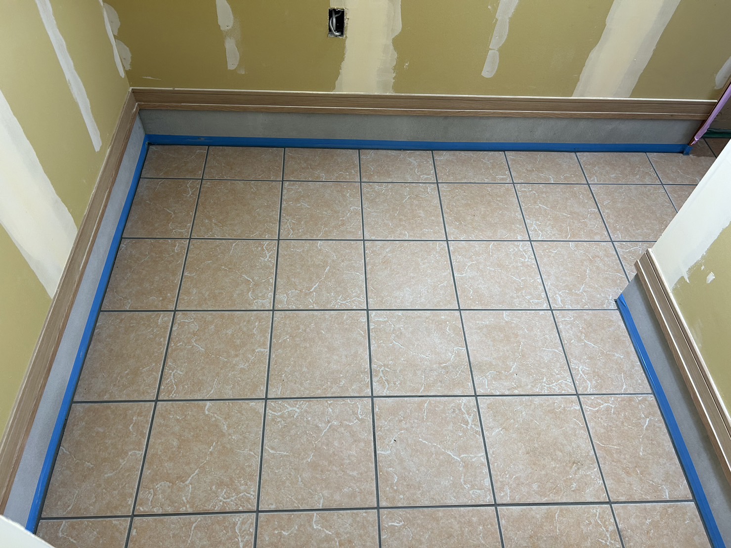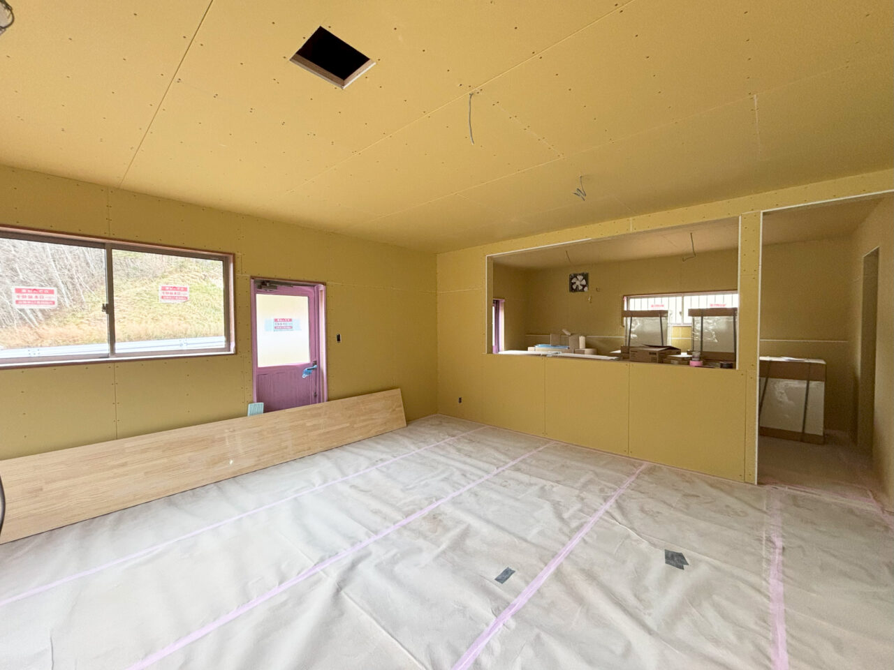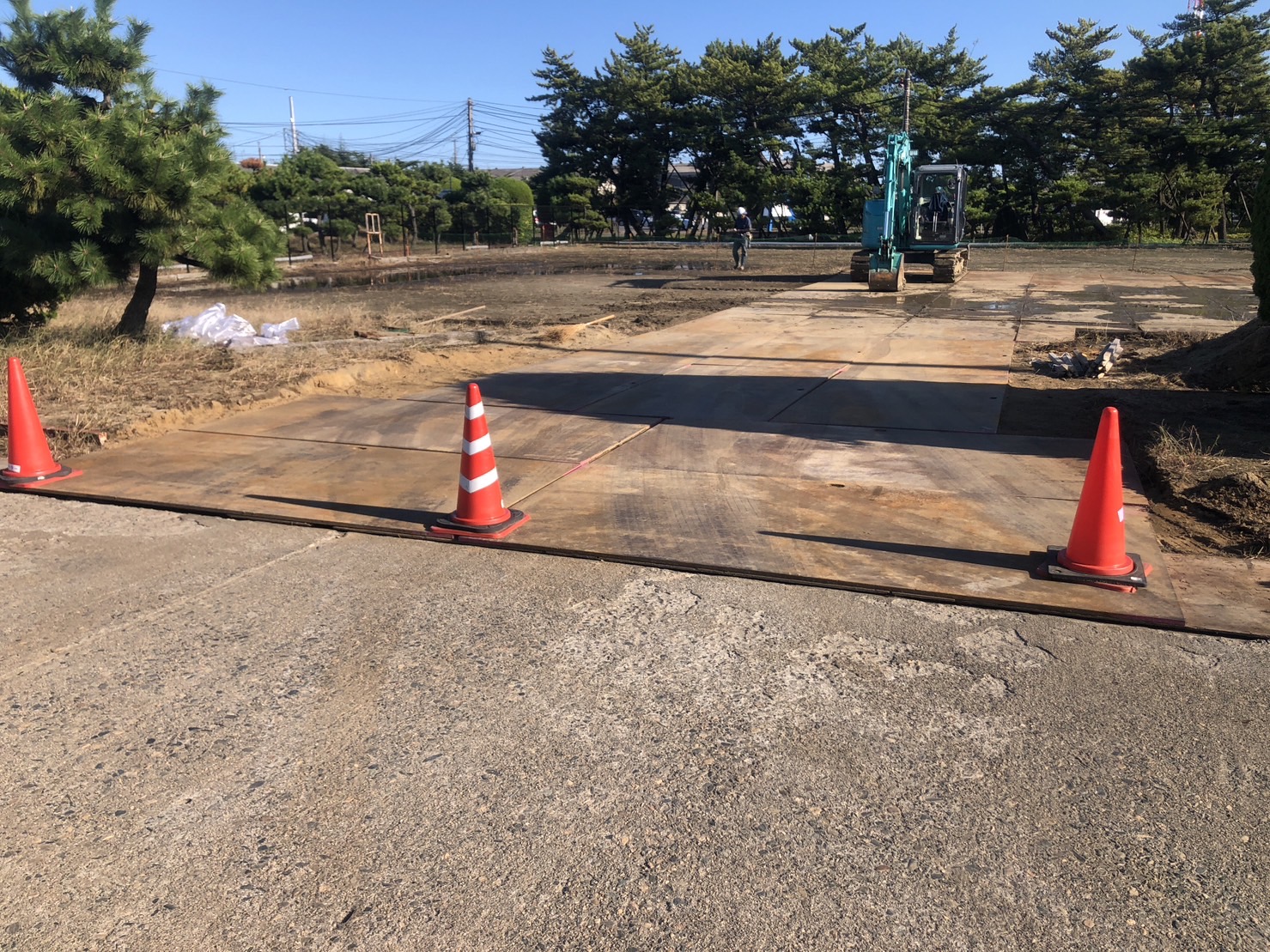 体育館床の不陸高さ、床・ジャッキアップ調整作業をしております。