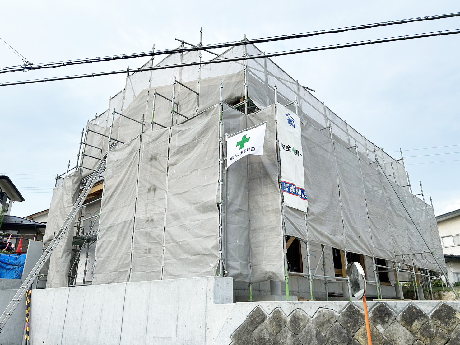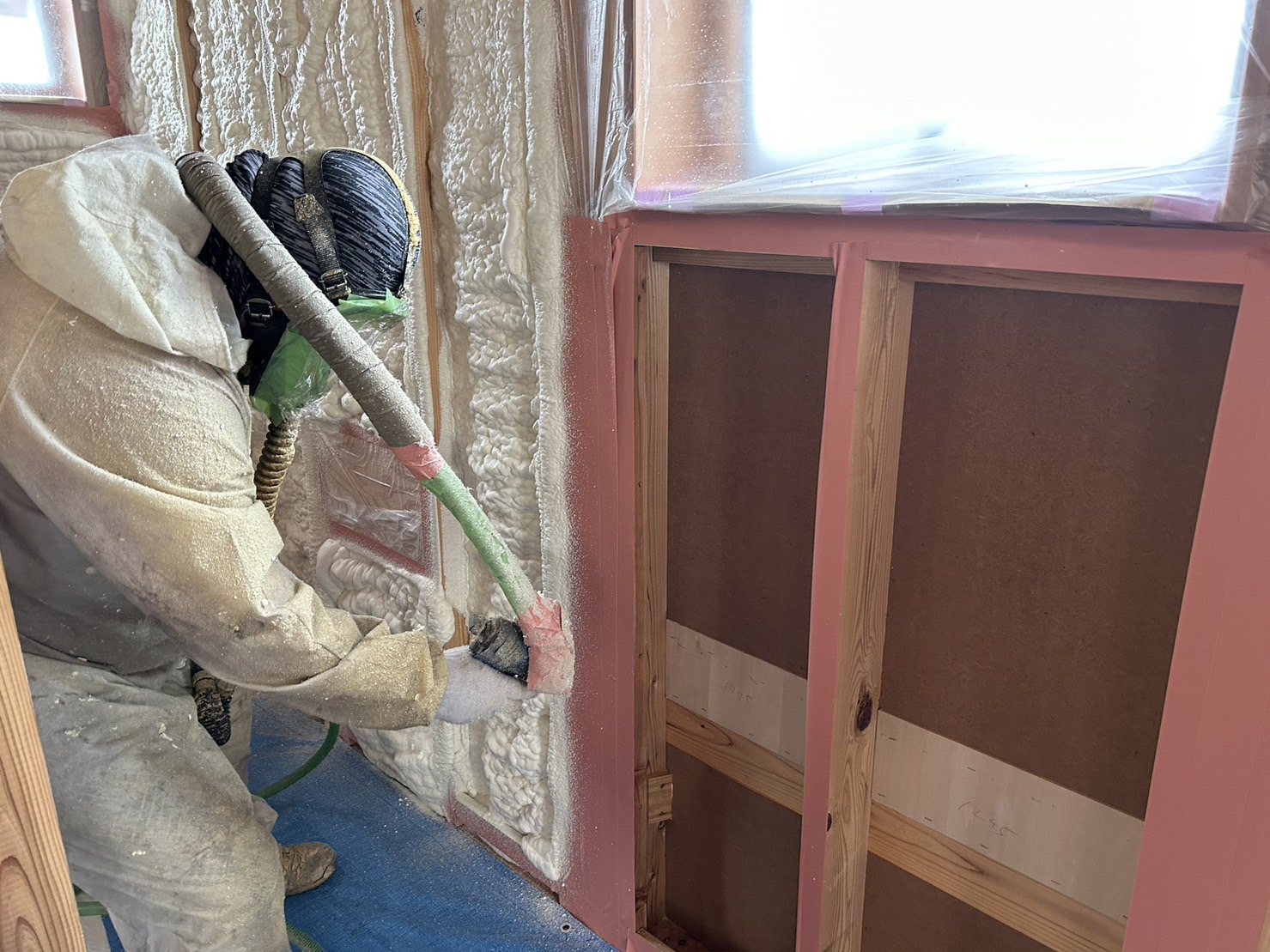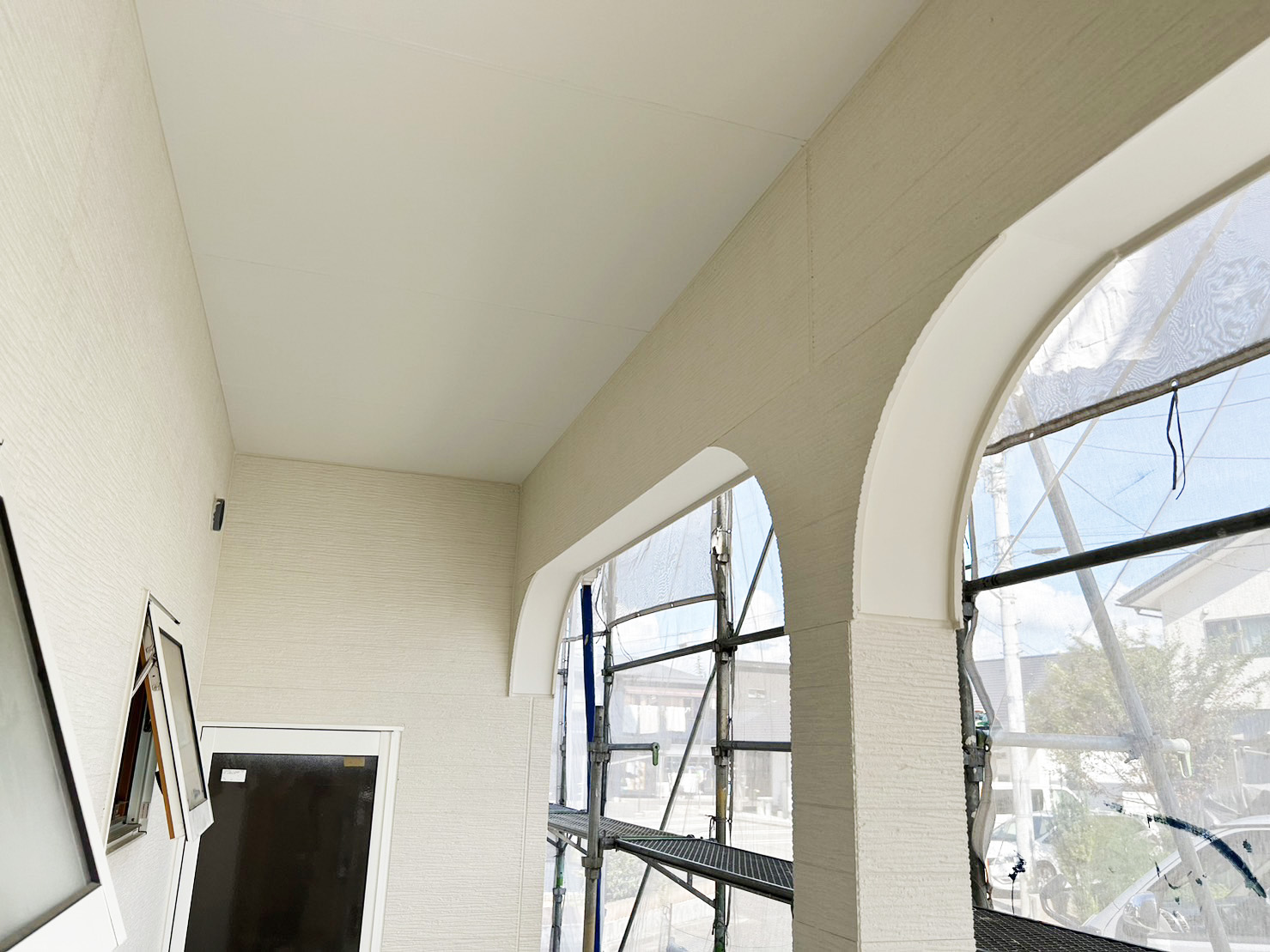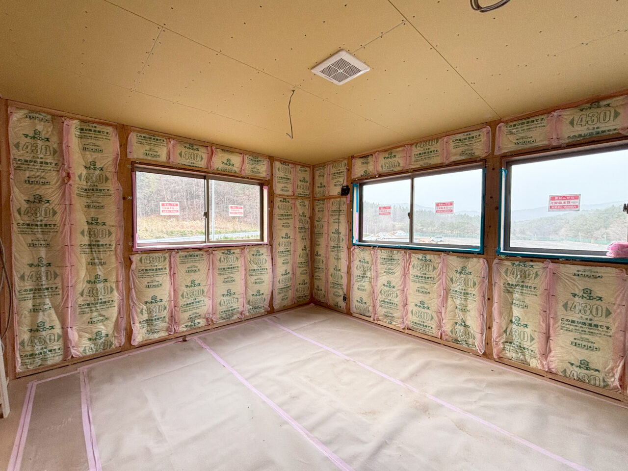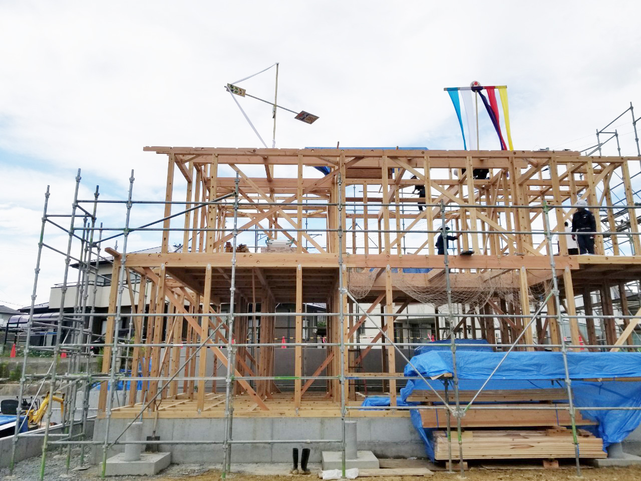 リビングの吹き抜け天井は、松無垢板仕上げです。